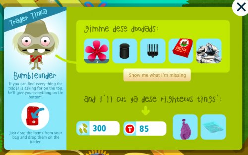 Okay this glitch keeps happening that I can’t find one of the items the traders. So I thought and I said to myself Hmm… what if I log on a log off again it will be there. So I log off and log on again and its not there! So five minutes later I ask someone to give me one and they did so the whole process took like twenty minutes thanks TT staff you are pro at helping me get the fast trader badge!