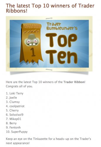 Top 10 Trader Tinka Ribbon Winners #3Hey Tinkas, Luke has posted the Top 10 Trader Ribbon winners of Tuesday 10th’s Trade on the Official Tinkatolli blog.