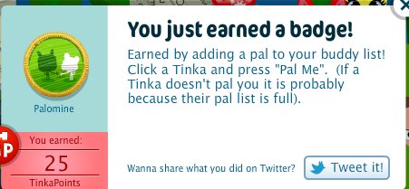 Tinkatolli has released a brand new badge which tinkas will receive if they add a pal to there buddy list. Take a look: