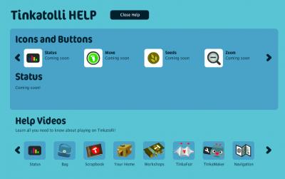 The help section is great especially for the new Tinkatesters. It provides videos which teach you how to do certain things on Tinkatolli such as using the Tinkamaker to make Tinkas, using your map etc. It even tells you the meanings of each icon and button in Tinkatolli.