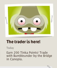 Trader Tinka’s Location (CANOPIA) – Trader Tinka’s Offer – Did you trade with Trader Tinka? Hey Tinkas, Tinkatolli has announced that Trader Tinka will be back on Saturday 19th May at 6 PM Tinkatolli Time.